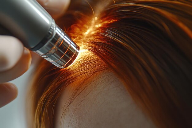 Laseroterapia wykorzystuje światło lasera do stymulacji skóry i mieszków włosowych, wspierając ich regenerację, dotlenienie, poprawę ukrwienia skóry głowy. Zabieg trwa około 20–30 minut.